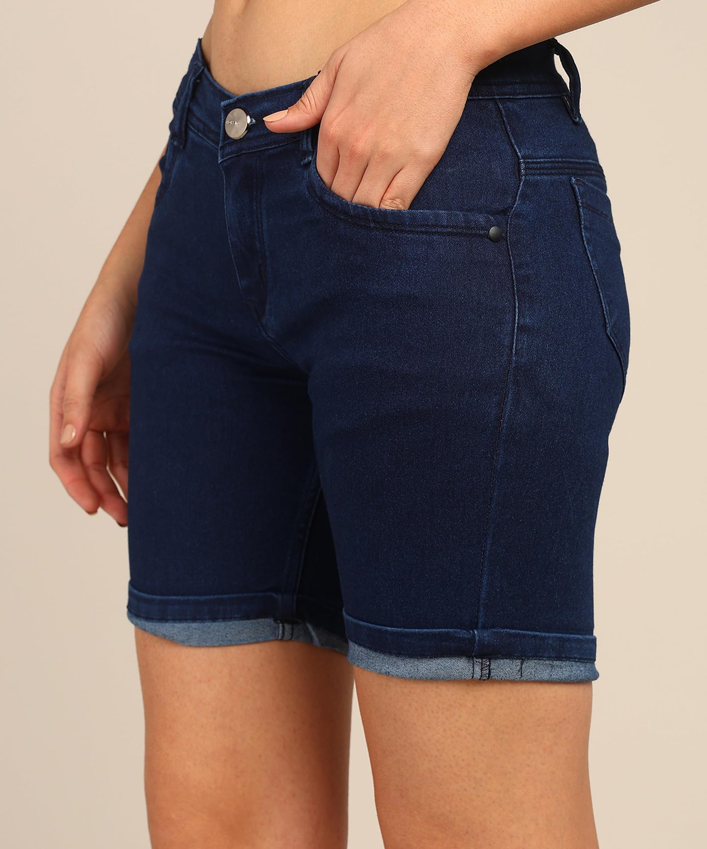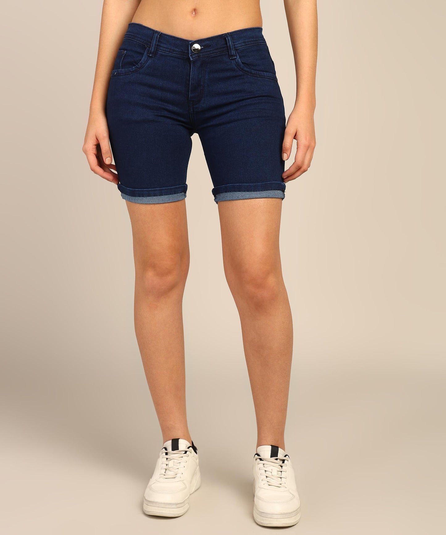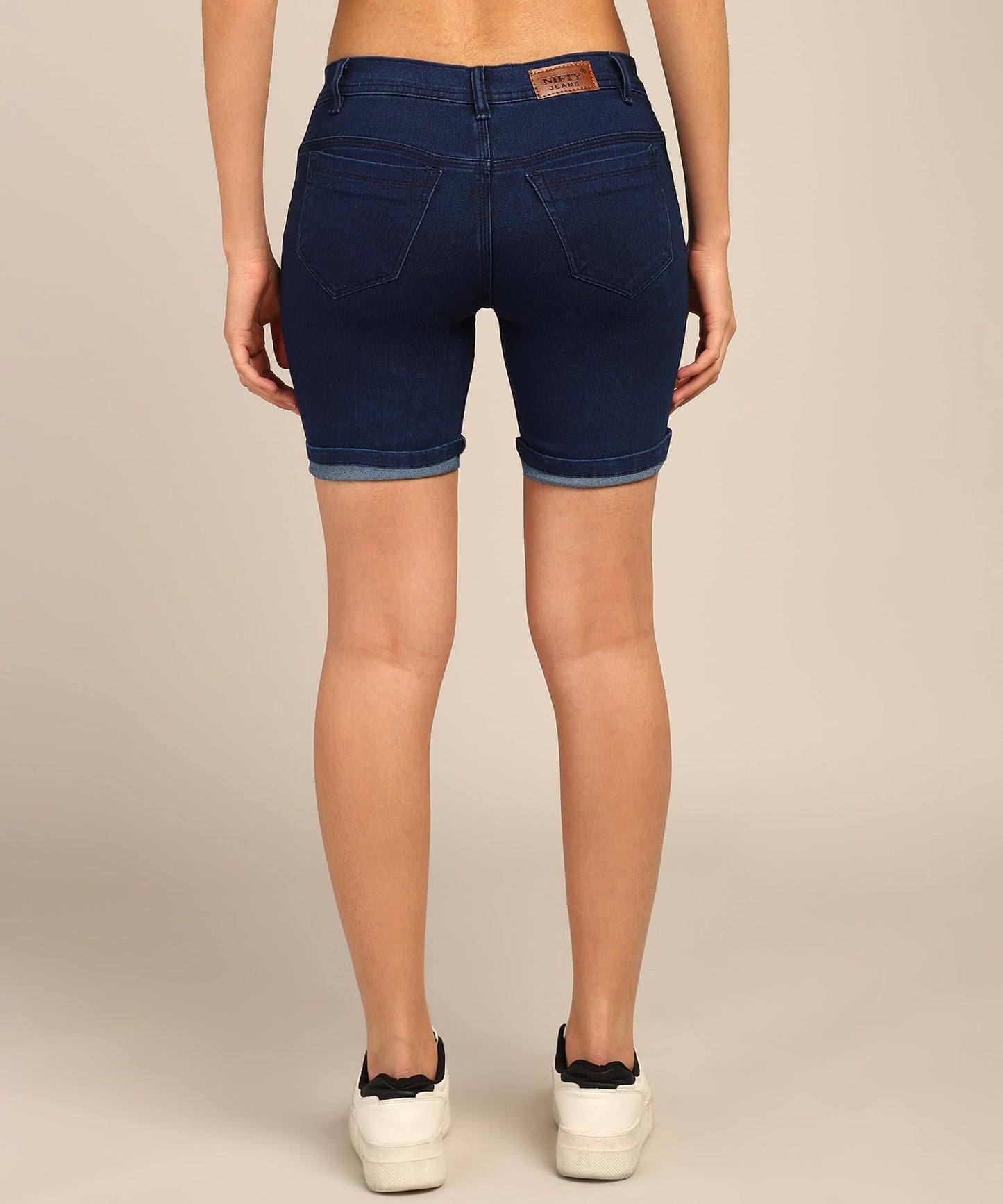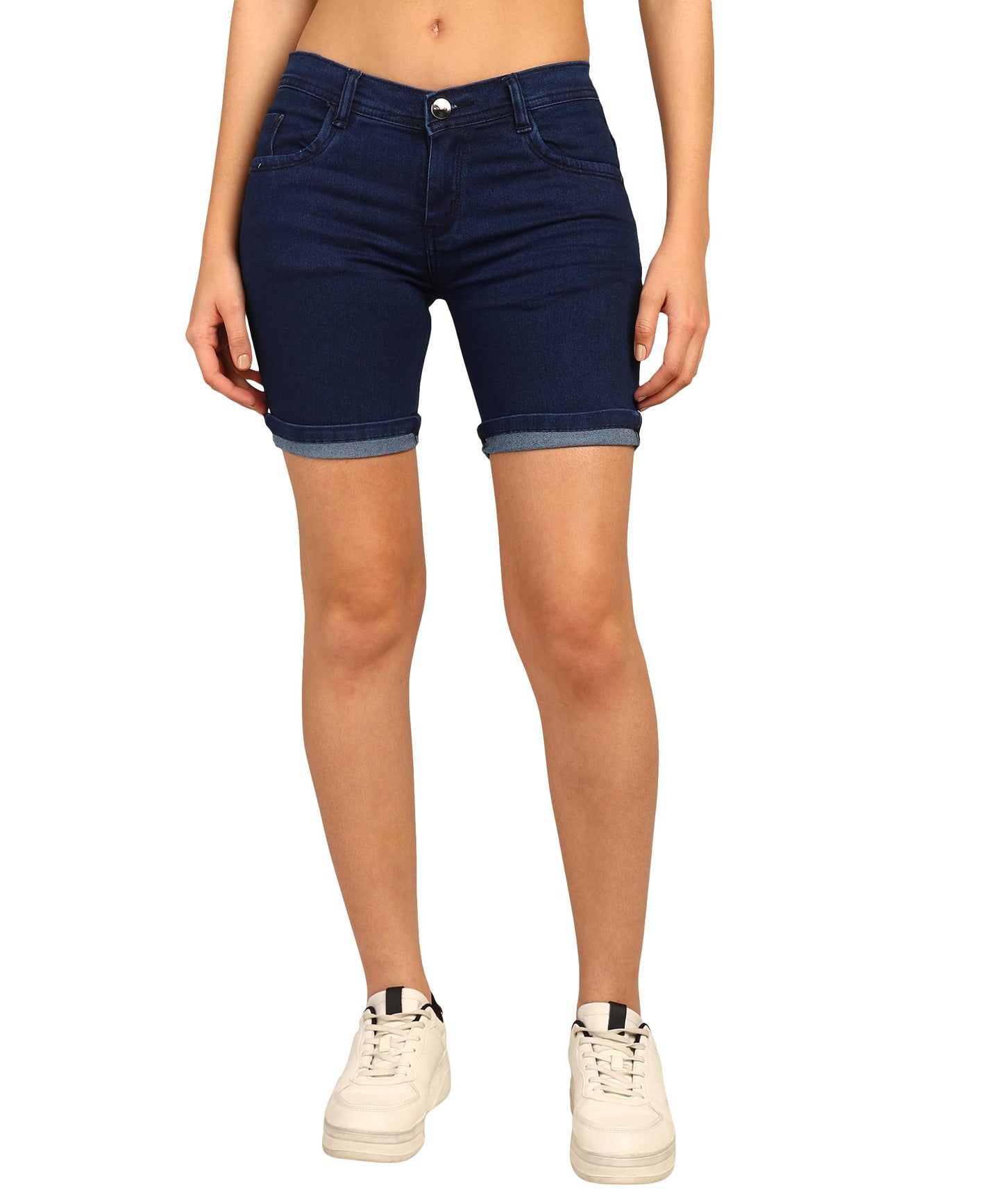 Nifty Women's Denim Stretchable Slim Fit Shorts (Short_PLN_BSC_36_Basic_36)