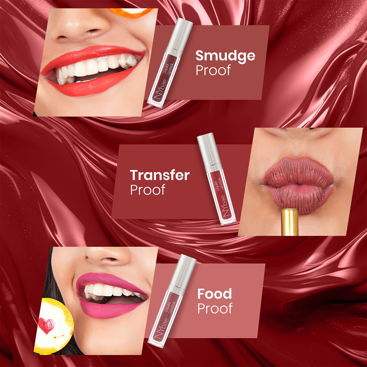Details: Step into a world of passionate color and impeccable style with NY Bae Confessions Liquid Lipstick in the most vibrant shade of the range. This beautiful matte lipstick is not just an air-light matte formula; it's a declaration of confidence, beauty, and allure. Whether you're aiming for a bold, statement look or a subtle, romantic hue on your lips & cheeks, this versatile liquid lipstick has got you covered. This lipstick offers a rich, matte finish that glides on effortlessly and stays put for hours, ensuring your lips and cheeks look flawless from day to night. The lightweight formula feels comfortable on your skin, avoiding any dryness or flakiness. Perfect for any occasion, this red lipstick is designed to complement all skin tones, adding a touch of glamour and sophistication to your everyday look. Indulge in the luxurious experience of NY Bae Confessions Liquid Lipstick and let your lips and cheeks speak the language of love. Embrace the long-lasting, vibrant color and the confidence it brings, making every moment a little more special.