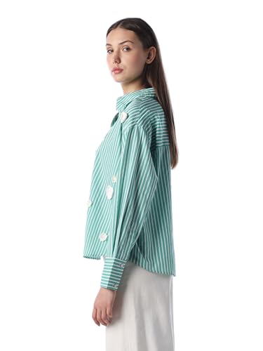 ONLY Women's Vertical Stripes Regular Fit Green Shirt
