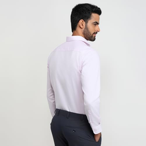Park Avenue Men Reguler Fit Stripe Pattern Pure Cotton Semi Cutaway Collar Full Sleeve Formal Shirt Red