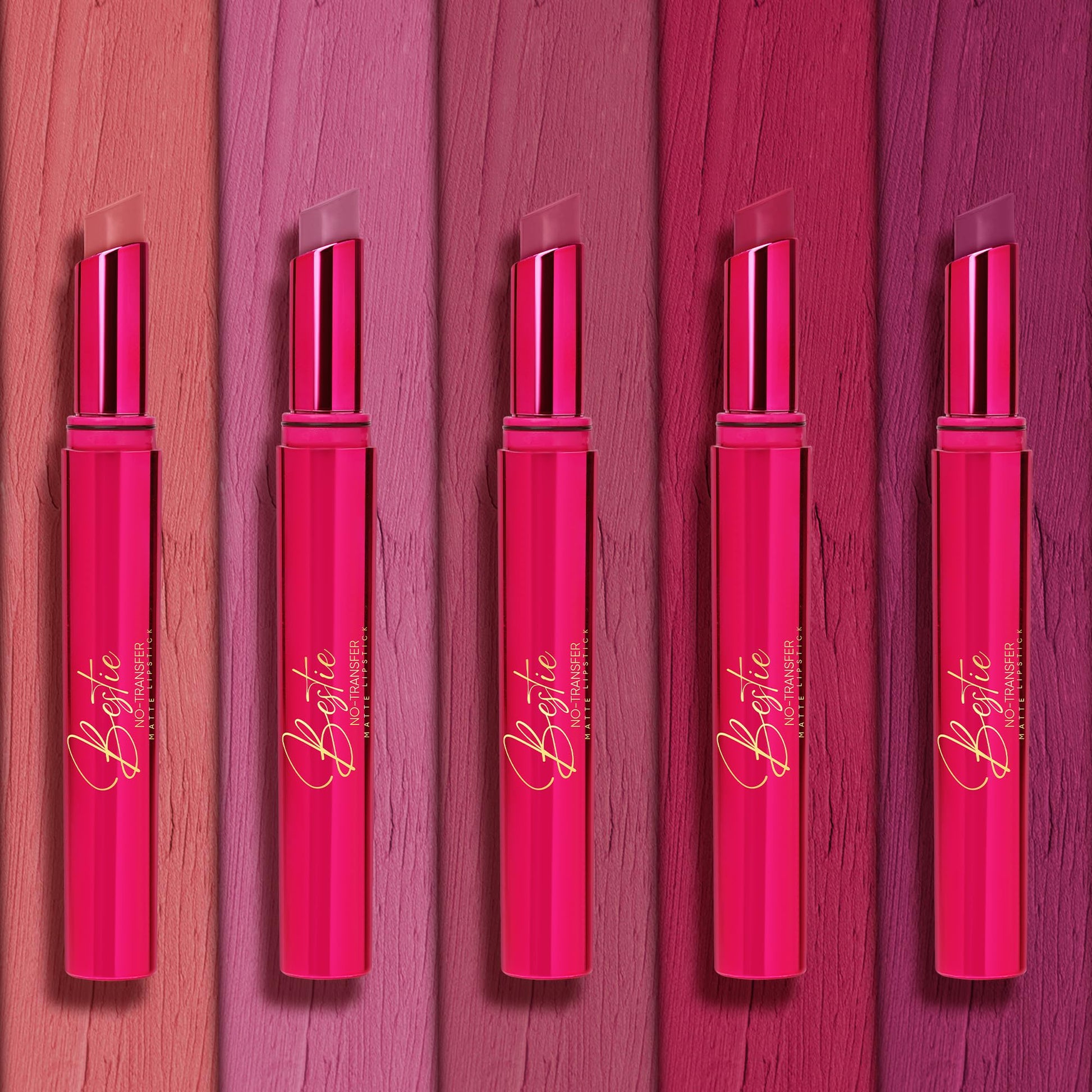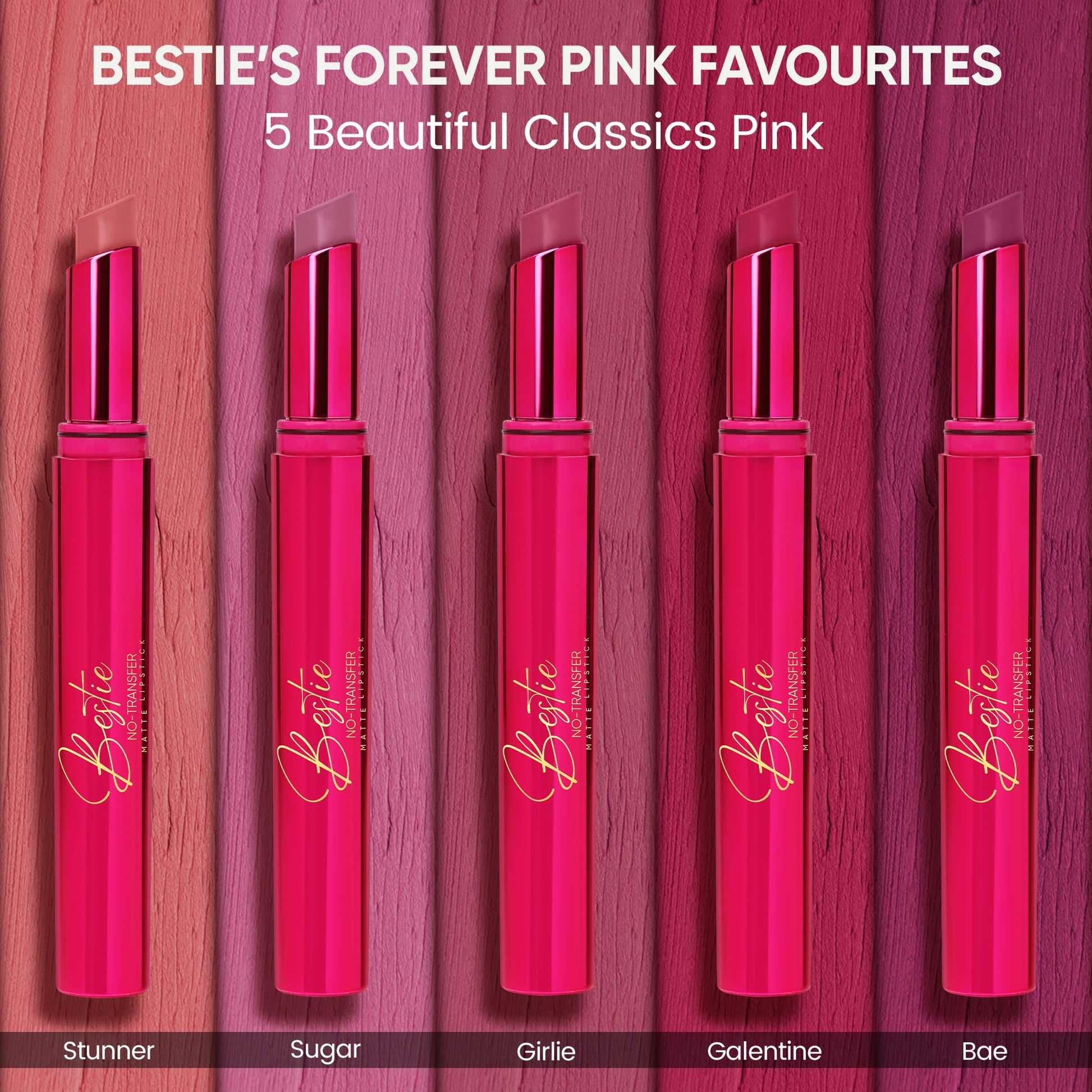• Beautiful Classic Pinks – Includes Stunner (Natural Pink Nude), Sugar (Pink-Mauve), Girlie (Berry Mauve), Galentine (Fuchsia Pink), and Bae (Berry Pink) – perfect for every mood and occasion.