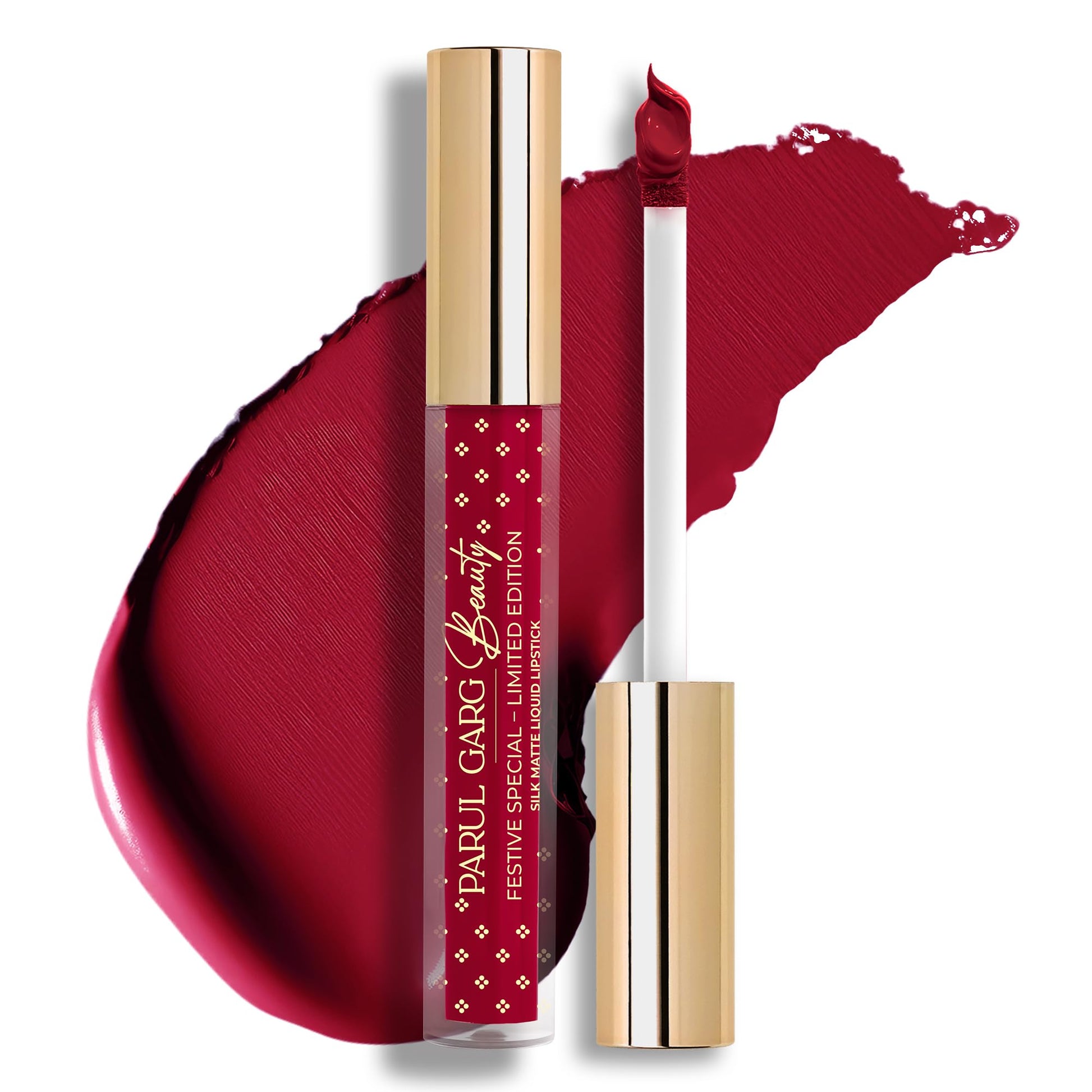 Parul Garg Beauty Silk Matte Liquid Lipstick | Long-Lasting & Smudge-Proof | Soft Matte Finish | Vegan & Clean Beauty | Hydrates with Shea Butter & Vitamin E (Suhaag, 2.5ml)