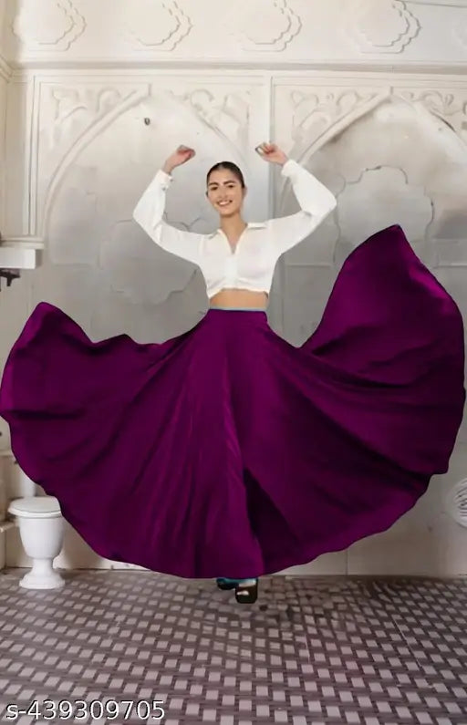Namepelton Women's American Crepe Blooming Flared Long for Traditional Stitched A-line Flare Skirt for Girls with 12 Meter Flare 40inch Height
