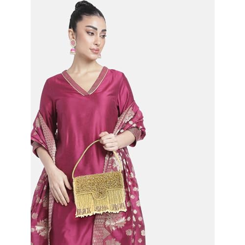 - DESIGN: Embellished with Indian hand work, the soft fabric interior of the evening bag has enough room to keep your credit card, cash, and other small essentials like mobile phones, lipstick, highlighter, keys.