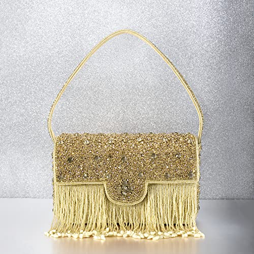 Peora Gold Clutch Purses for Women Stone Studded Handmade Handbags Party Bridal Clutch