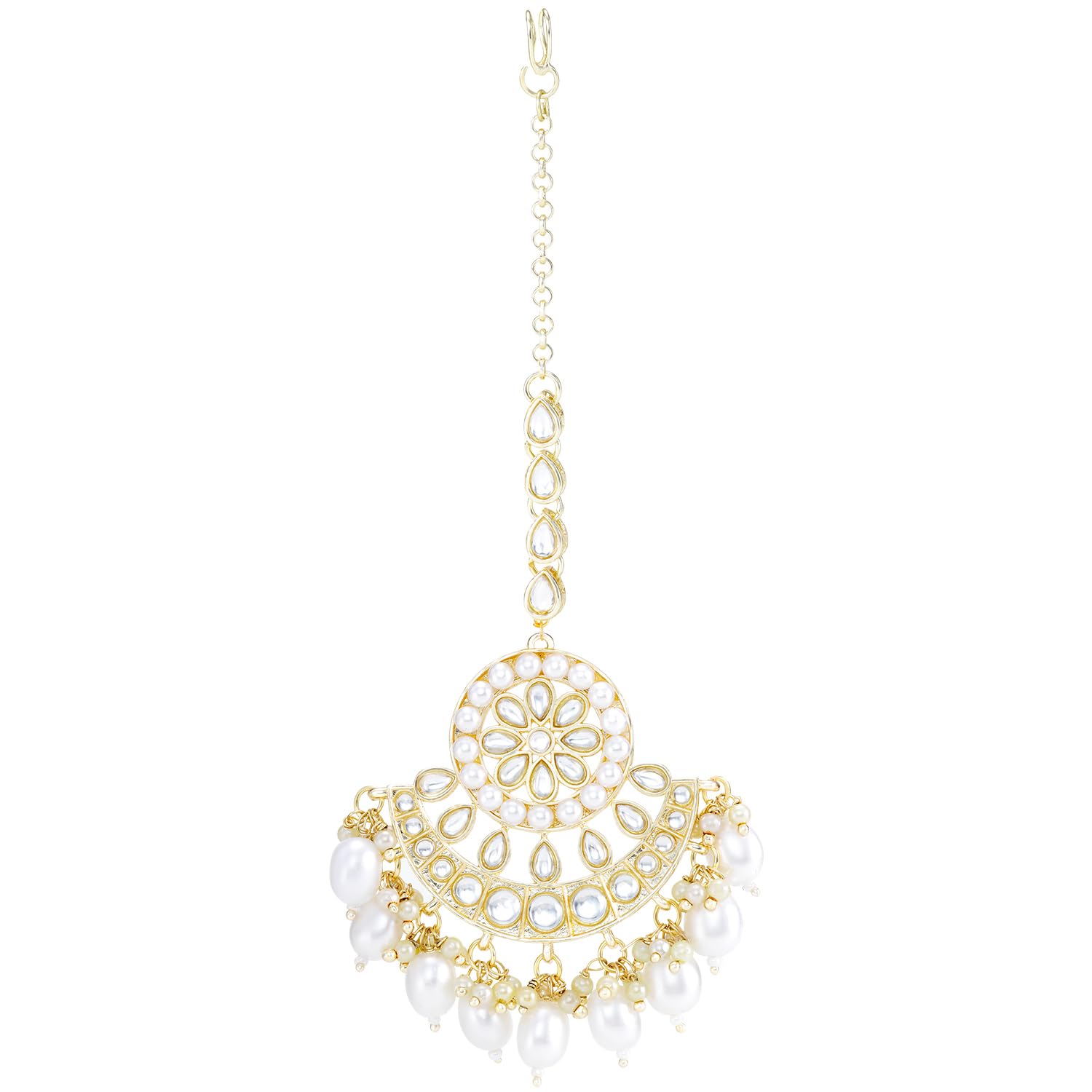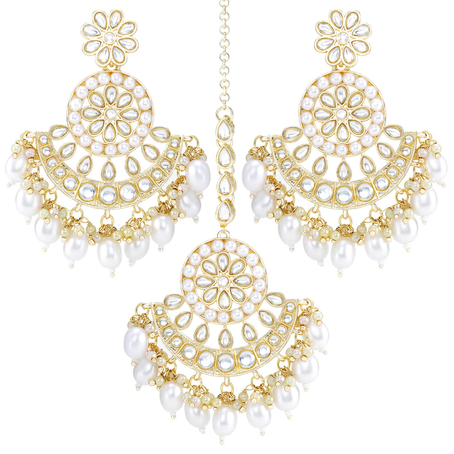 Peora Traditional Gold Plated White Kundan & Pearl Dangle Earrings & Maang Tikka Ethnic Stylish Jewellery Set Gifts for Women & Girls
