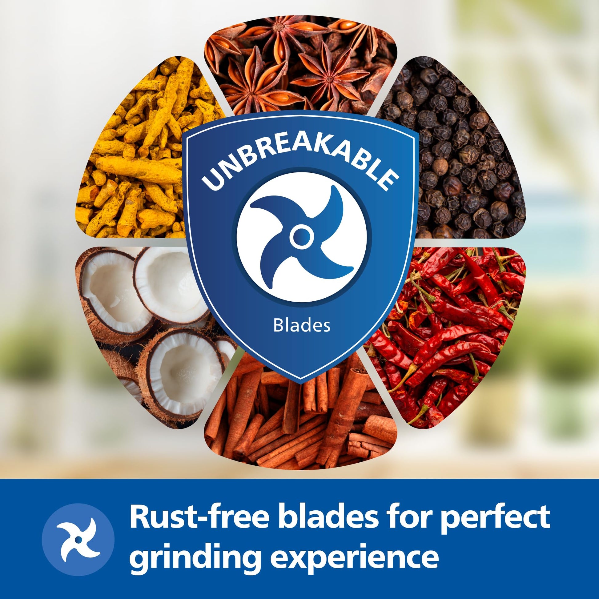• Powerful 1000W motor with robust jar and blade design that ensures perfect results by fine grinding even the toughest ingredients – grinds anything in 90 seconds