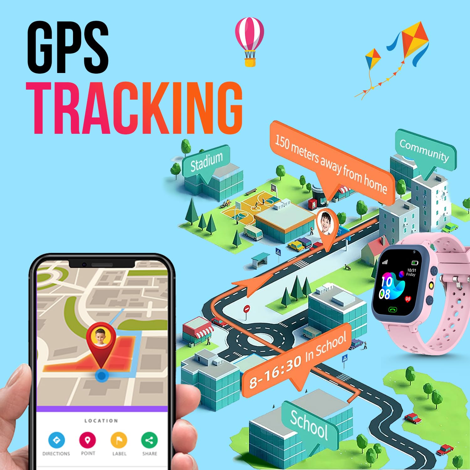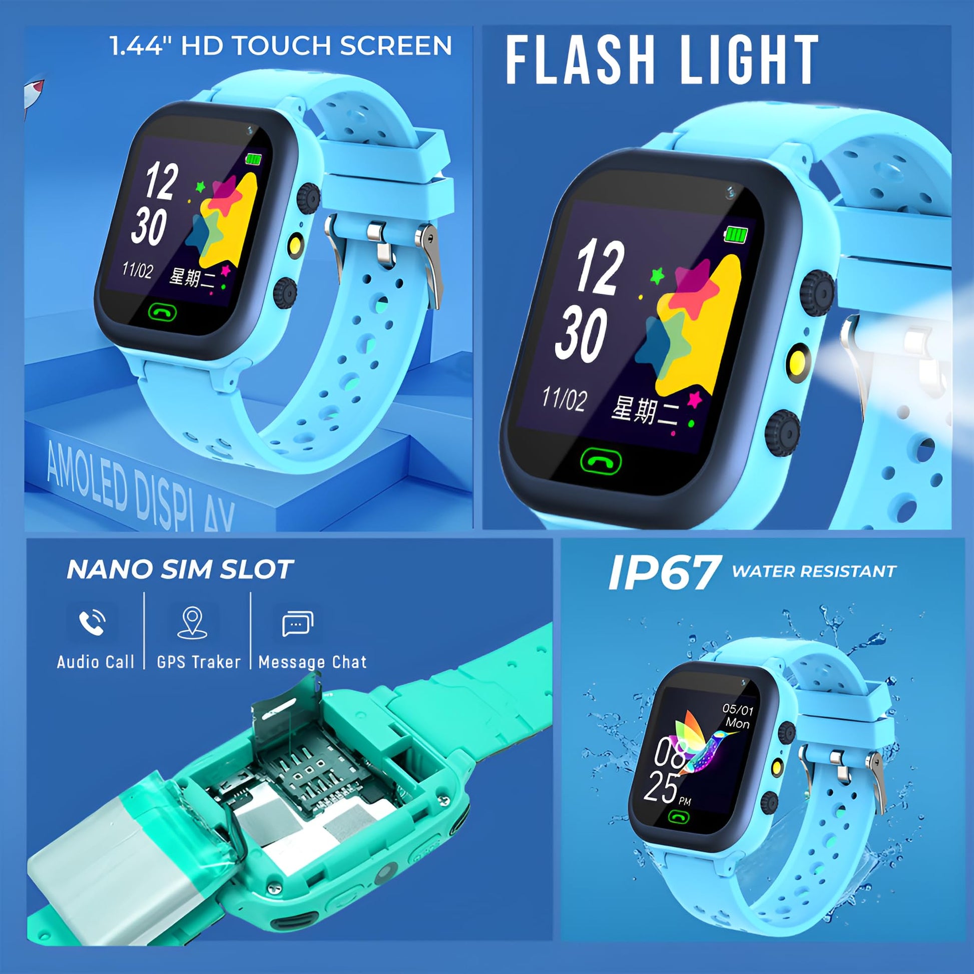 - 【Muti-Functional Smart Watch for Kids】Kids smartwatch with selfie-cam, games, torch, MP3 player, voice recorder, pedometer, alarm, stopwatch, theme, screensaver select, backlight time, silent profile, five country language, ringtone volume etc.