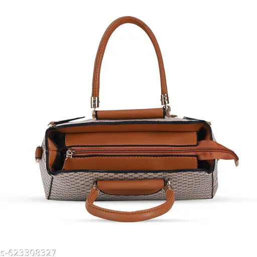 This Women White Handbag is a stylish Ladies Vanity Bag crafted from high-quality synthetic leather for durability and a chic look. Featuring two comfortable handles, it is easy to carry while offering a spacious interior to hold essentials like your phone, wallet, keys, and makeup. The secure zipper closure keeps your belongings safe, making it perfect for everyday use, shopping trips, or casual outings. Elegant, practical, and versatile, this handbag adds a touch of sophistication to any outfit.