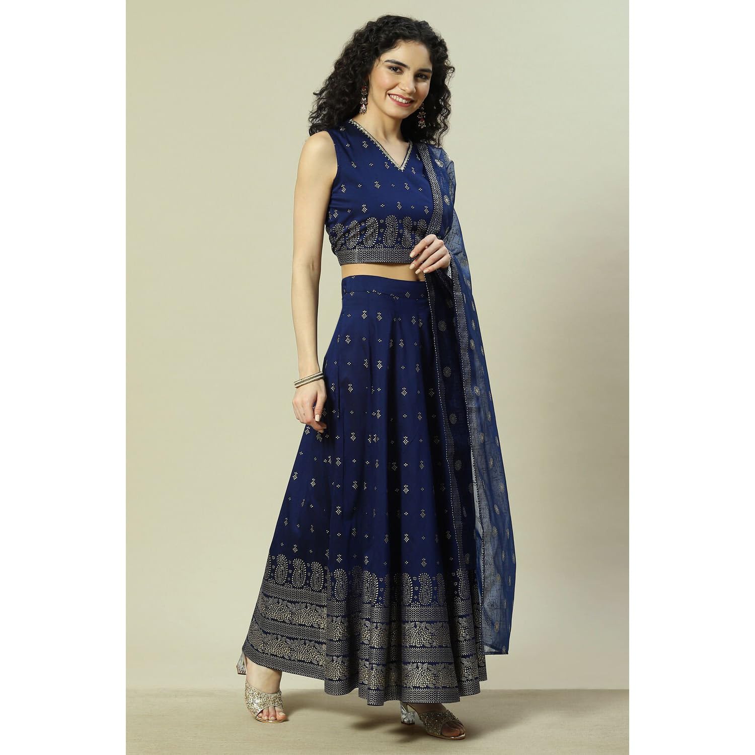 Rangriti Women Indigo Cotton Blend Woven Straight Lehenga Choli Set_36