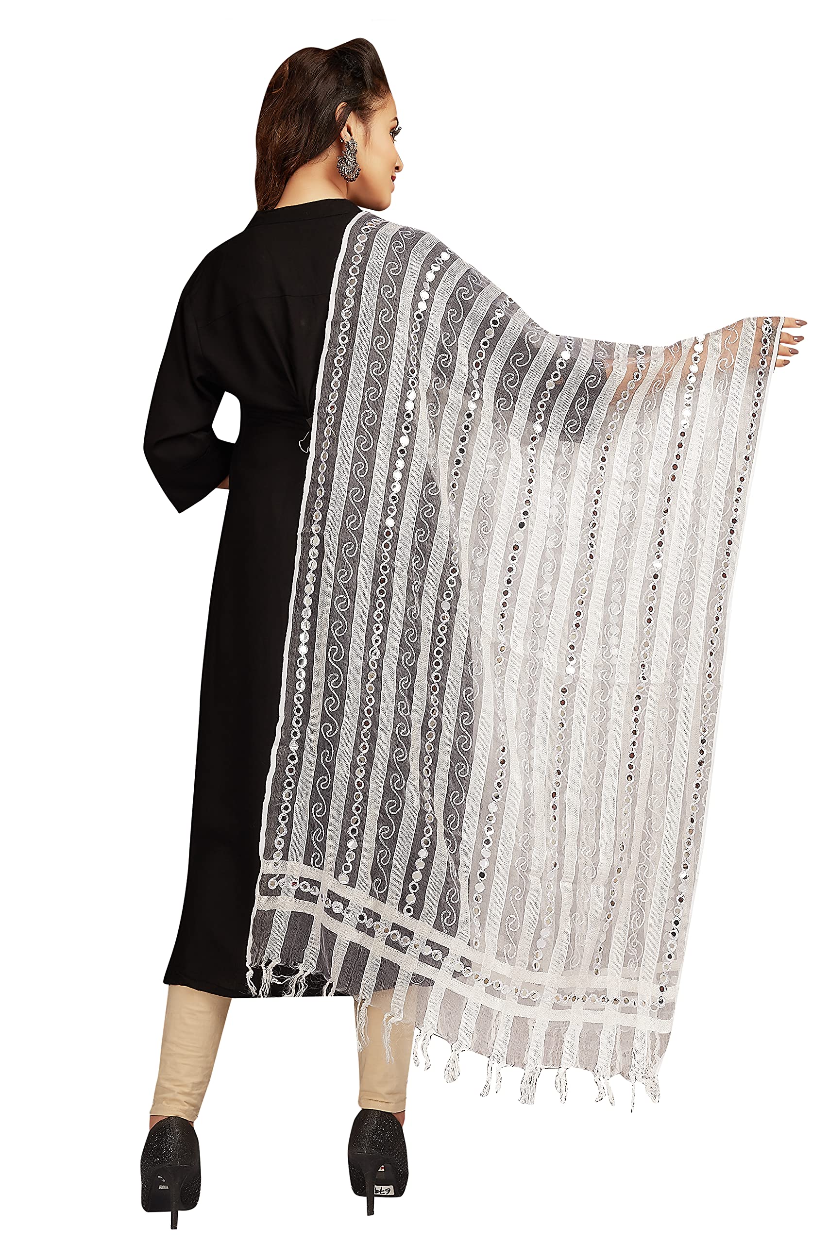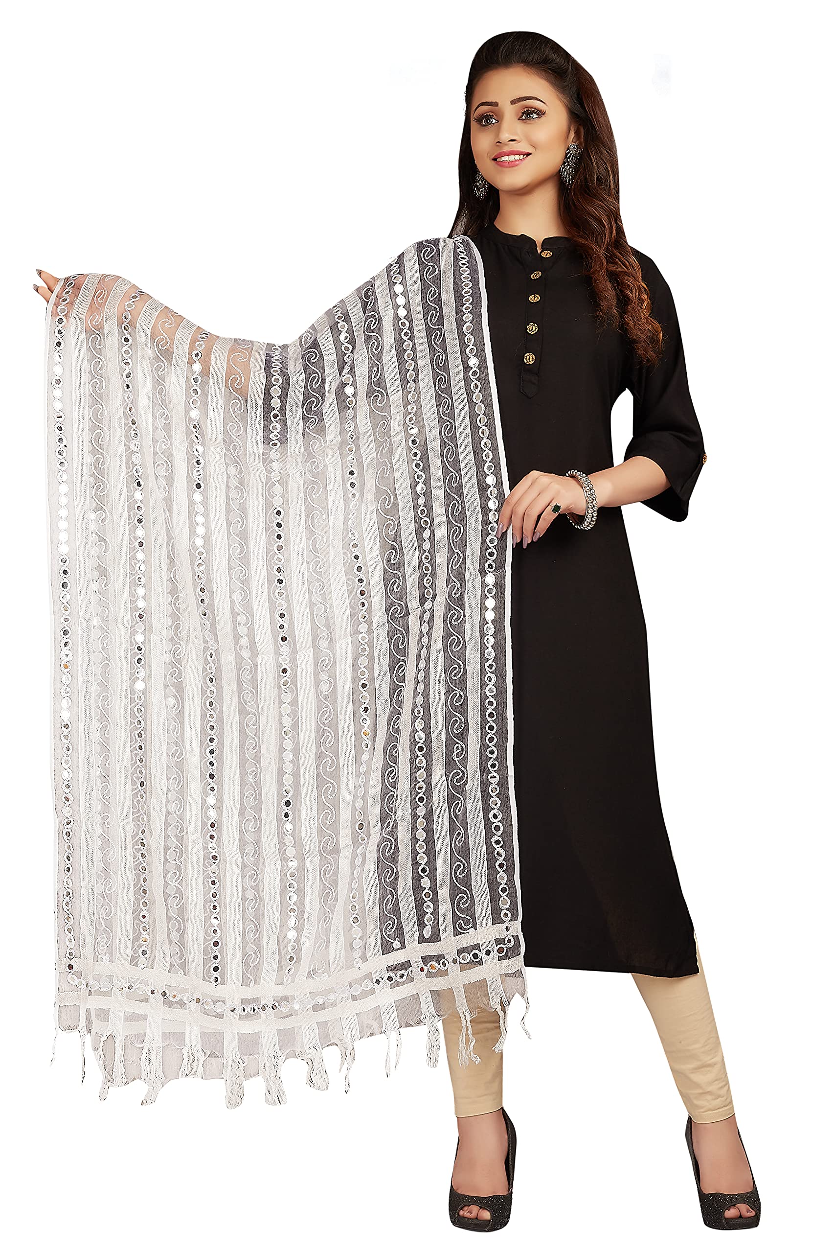 RANI SAAHIBA Women's Mirror Work Embroidered Tissue Organza Dupatta (SKRDD2074_White)