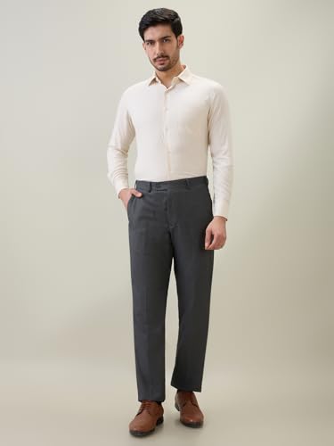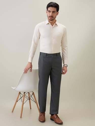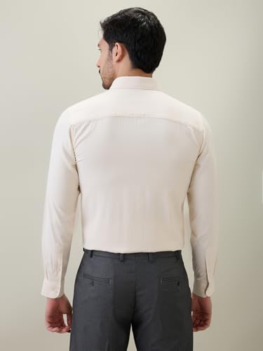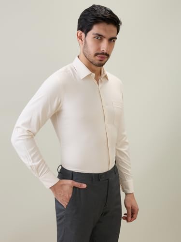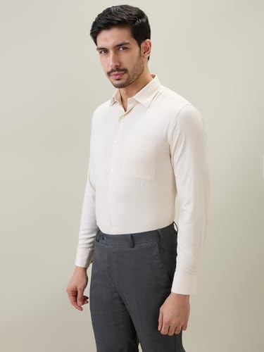 Raymond Men Contemporary Fit Structure Pattern Bamboo Polyester Blend Semi Cutaway Collar Full Sleeve Formal Shirt Yellow
