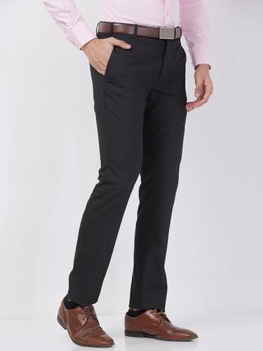 Raymond Men Slim Fit Checks Pattern Poly Viscose Blend Flat Front Formal Trouser Black