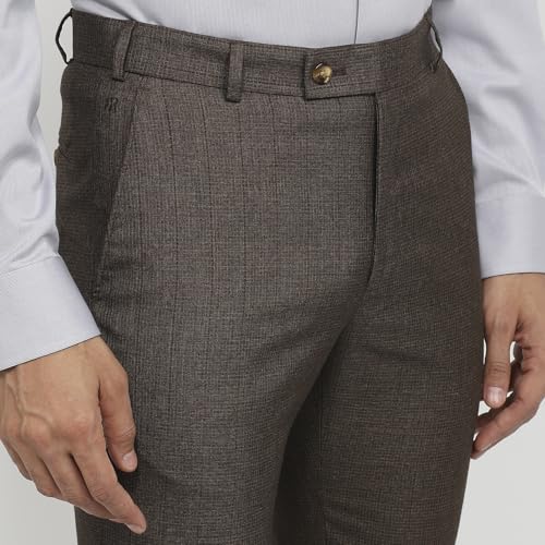 Raymond Men Slim Fit Checks Pattern Polyester Blend Flat Front Formal Trouser Dark Brown