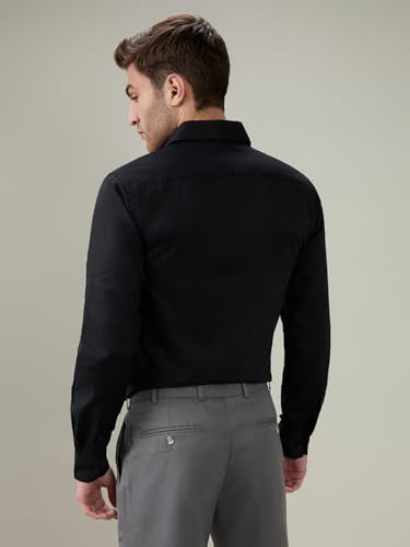 Raymond Men Slim Fit Solid Chambray Pattern Pure Cotton Semi Cutaway Collar Full Sleeve Formal Shirt