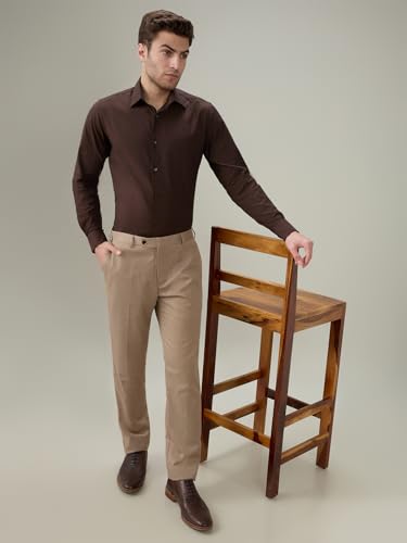 Raymond Men Slim Fit Solid Chambray Pattern Pure Cotton Semi Cutaway Collar Full Sleeve Formal Shirt