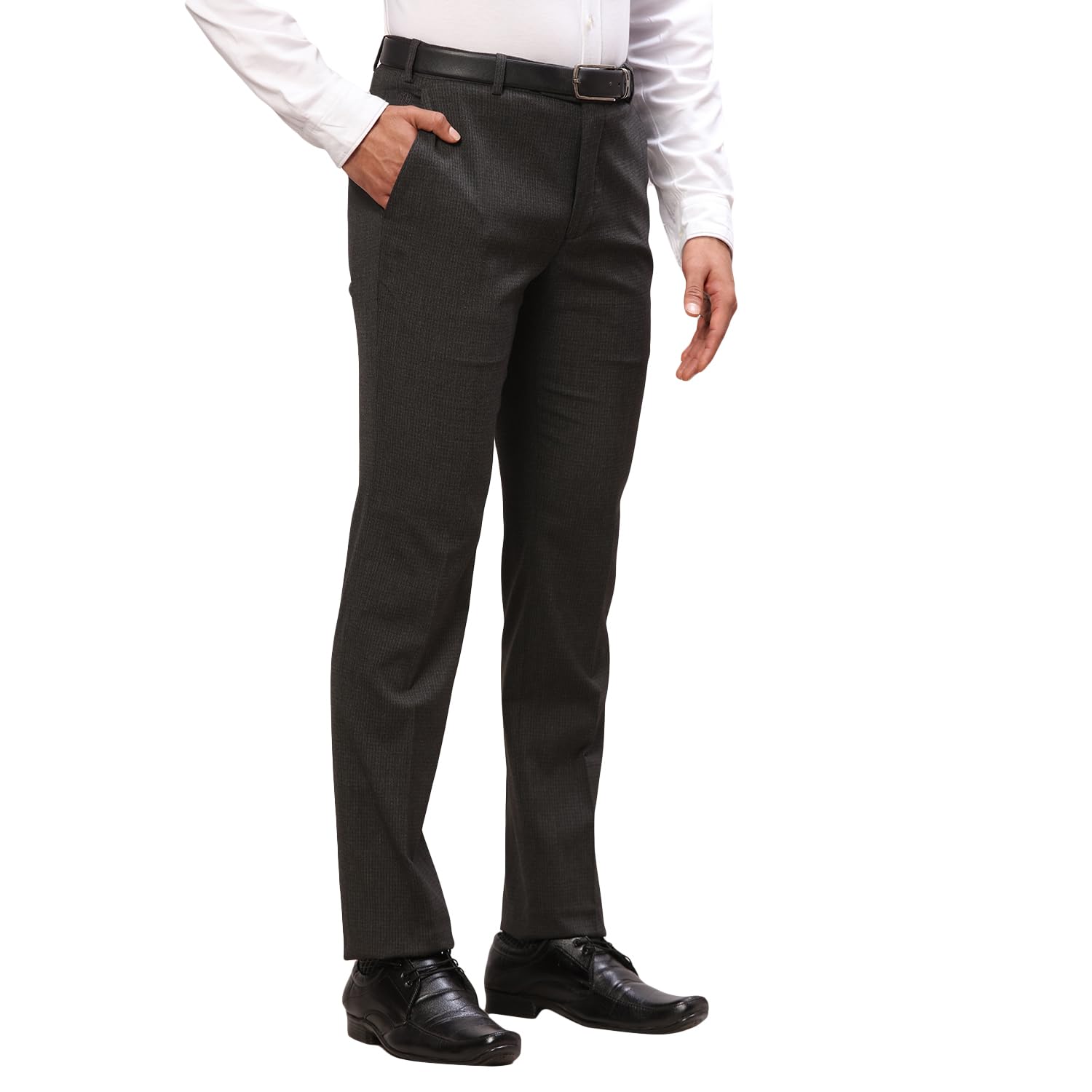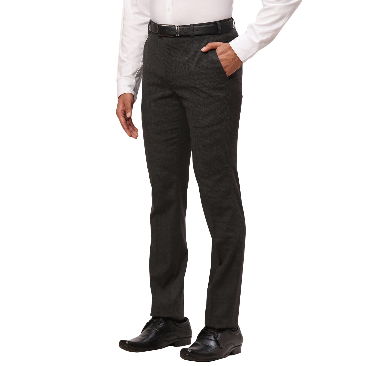 Raymond Men's Slim Fit Structure Pattern Polyester Viscose Blend Flat Front Trouser (Size: 32)-RMTS04706-G8 Dark Grey