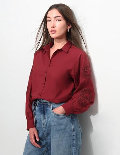 Relaxed Fit Solid Shirt with Embroidery