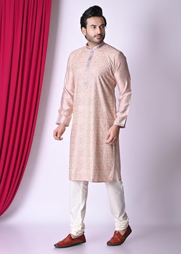 sajindia Men’s Traditional Kurta | Elegant Ethnic Wear for Men | Comfortable Fabric | Festivals, Weddings & Celebrations | Style 94 Pink