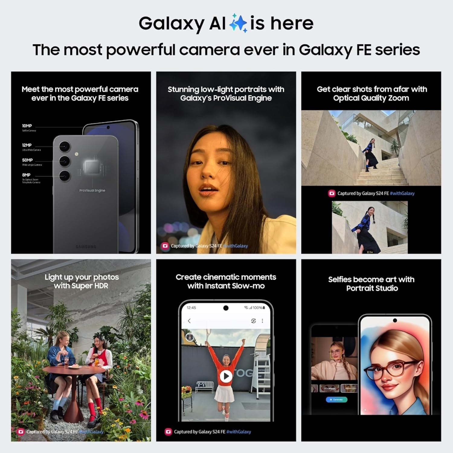 Details: Meet the Galaxy S24 FE with Galaxy AI, where every photo sparks endless creativity. Immerse yourself in the full Galaxy AI experience and unlock countless ways to explore your imagination. Snap it, circle it, tap it – discover why it’s totally worth it.