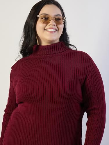 Sassafras Curve Women Maroon Acrylic Wool High Neck Short Dress XXL