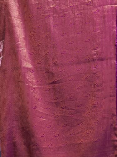 Satrani Women's Silk Blend Banarasi Jacquard Saree with Unstitched Blouse Piece (3819S409N_Deep Purple & Golden)