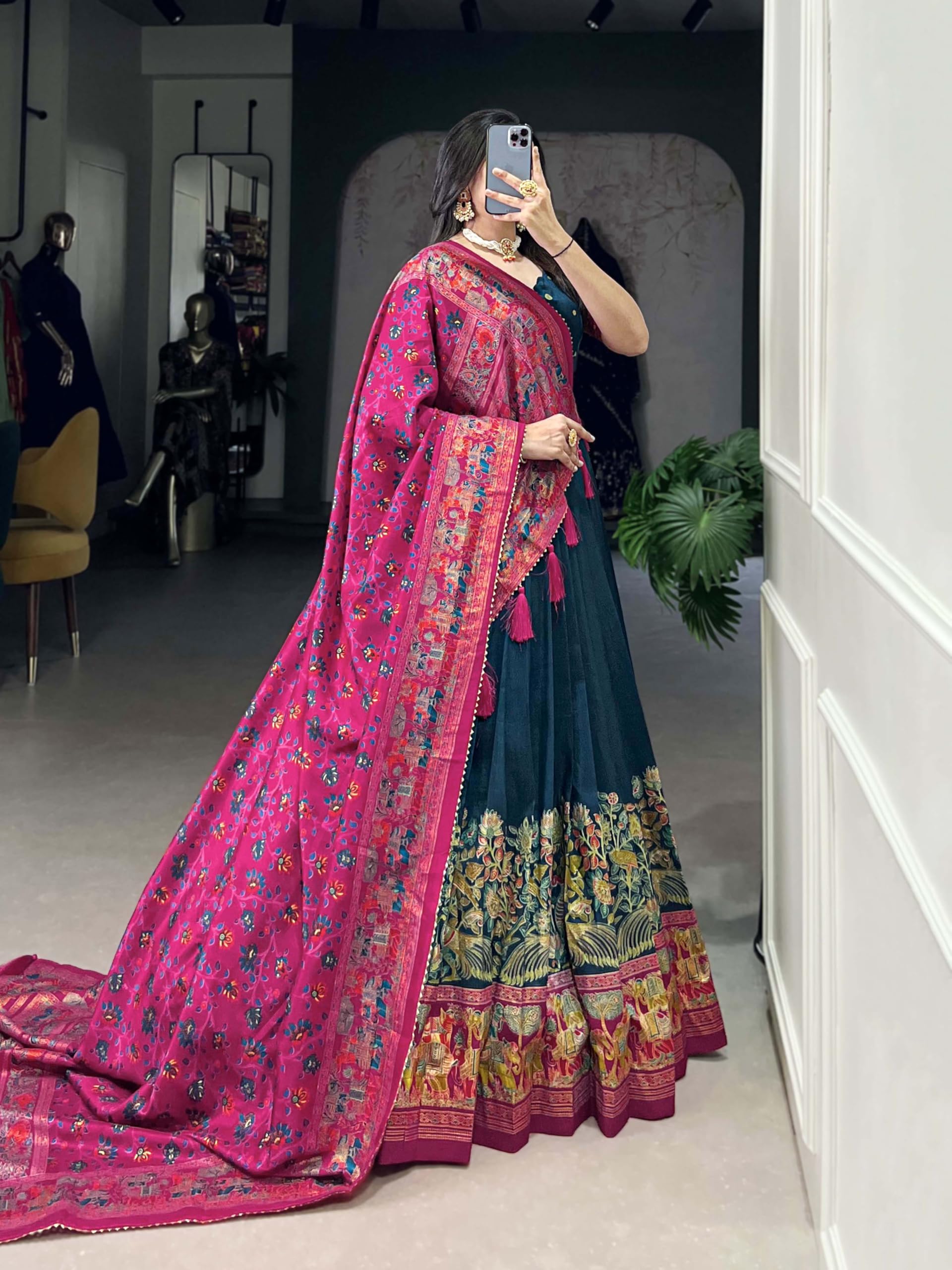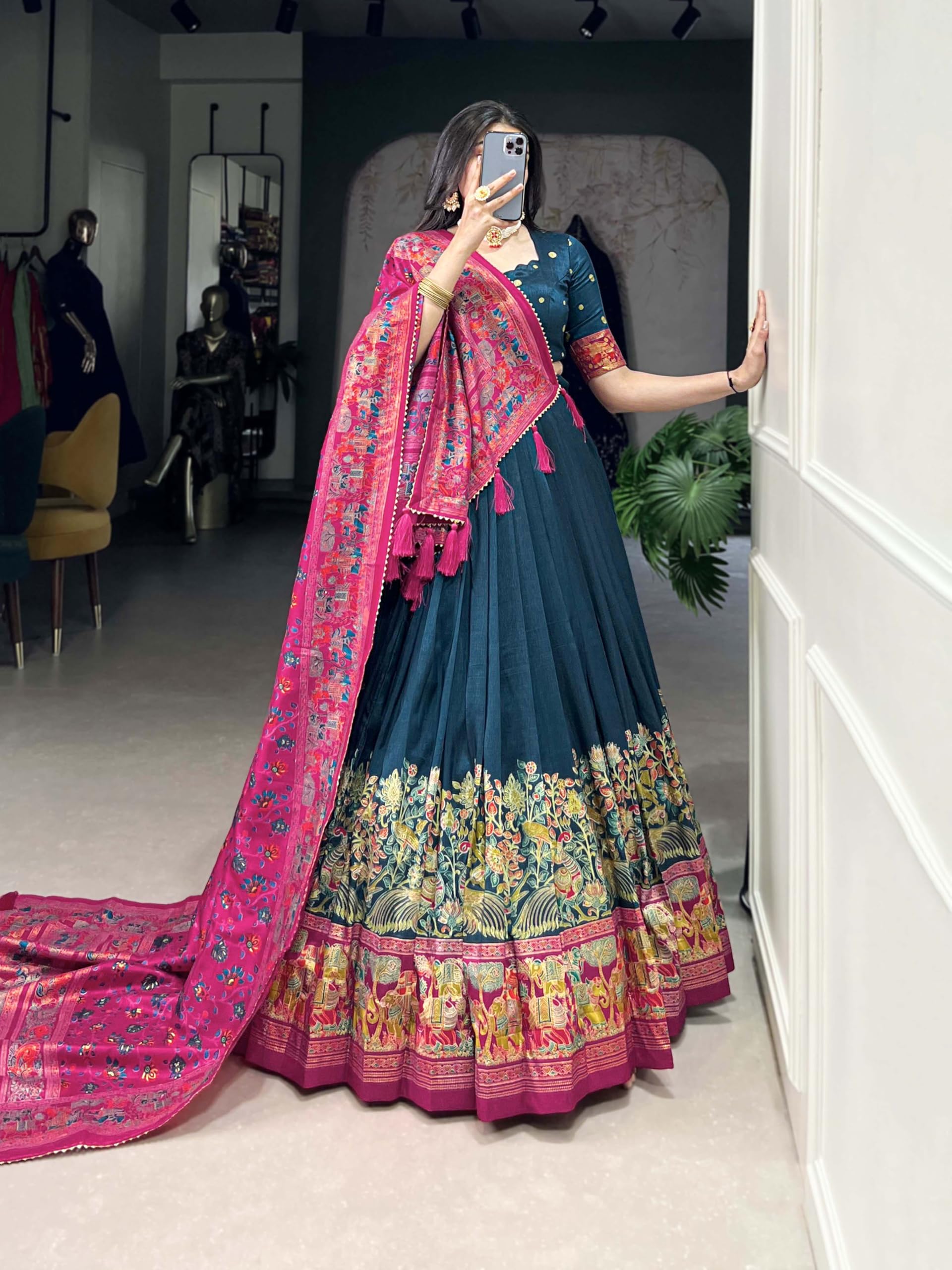 SD Collection Women's Navaratri Trending Designeer Tussar Silk Lehenga Choli Set With Dupatta And Blouse (BLUE)