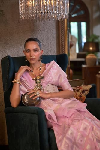 SGF11- Women's Kanjivaram Soft Cotton Linen Silk Zari Woven Soft Silk Saree With Blouse Piece (Light Pink)