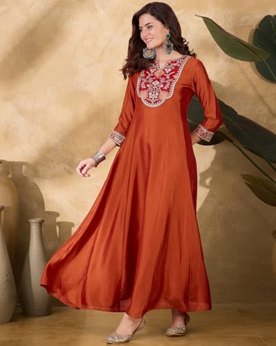 SheWill Orange Vichitra Silk Zari Sequence Thread Cording Embroidered Gown for Women – Elegant Floor-Length Ethnic Ensemble with Graceful Detailing SHEKR10215_ROOH_B