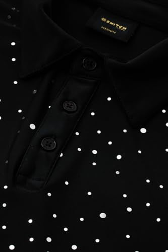 SNITCH Men's Polo T-Shirt | Polka Dot Pattern & Buttoned Closure | Premium Nylon Spandex Blend Fabric, Breathable & Stretchable Material | Casual & Semi-Formal Wear | Black