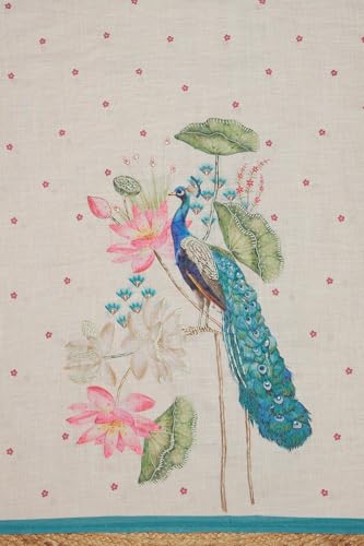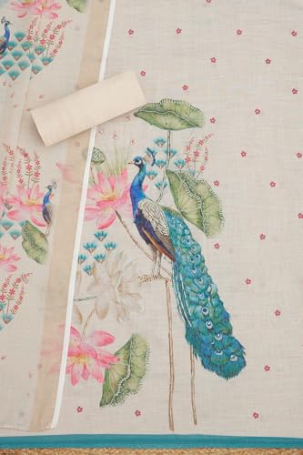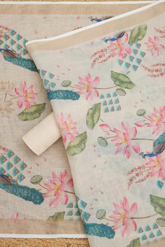 Soch Womens Beige Linen Shimmer Botanical Print Unstitch Dress Material With Sequins