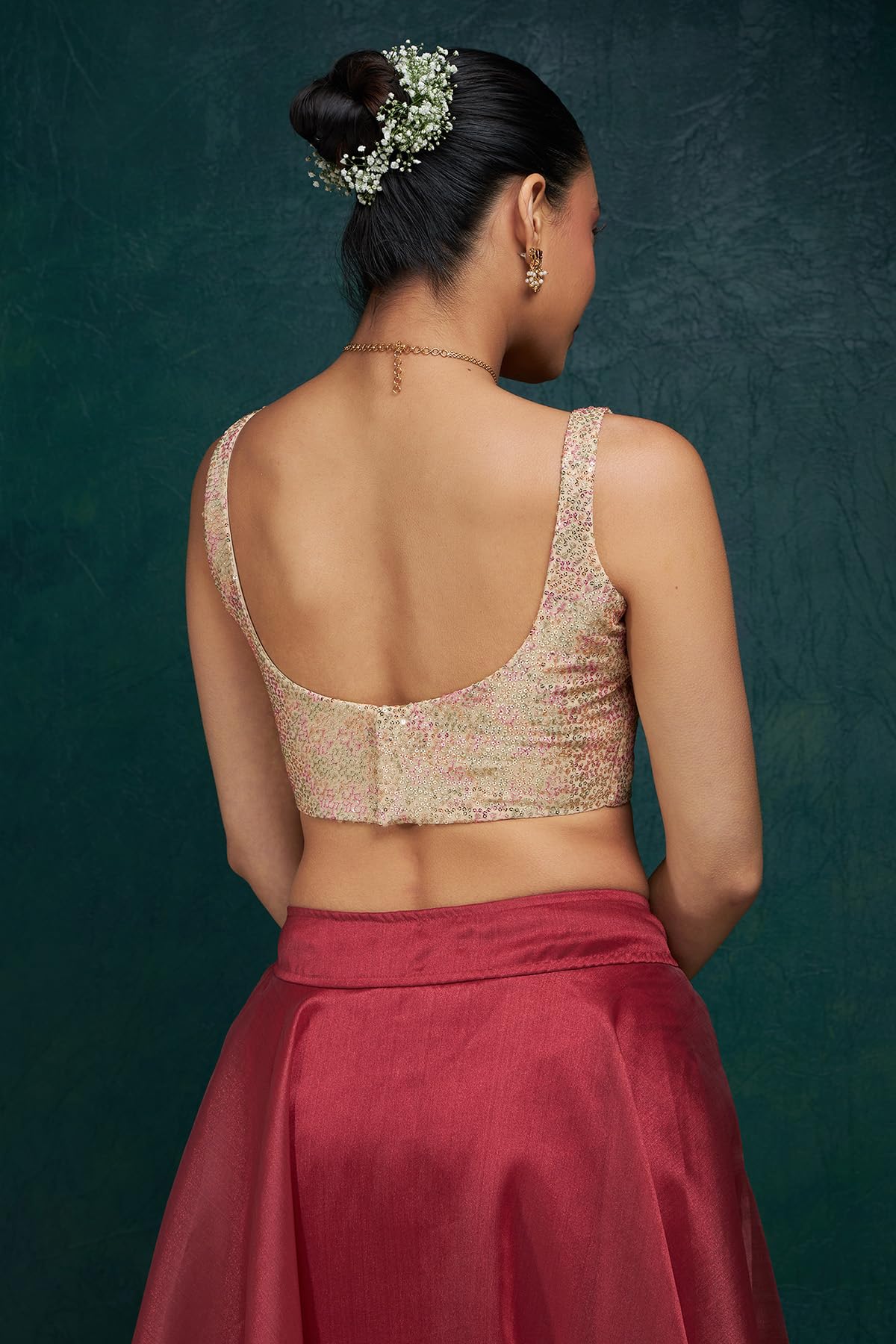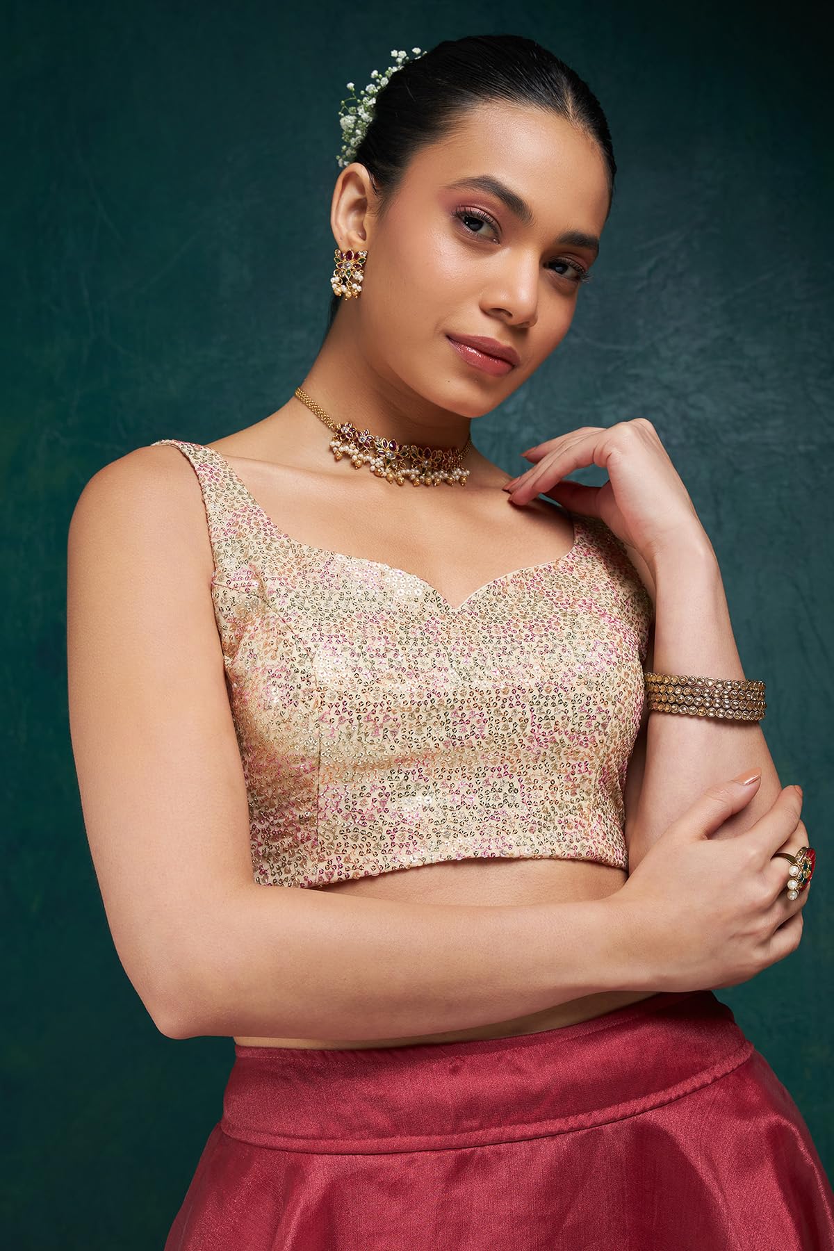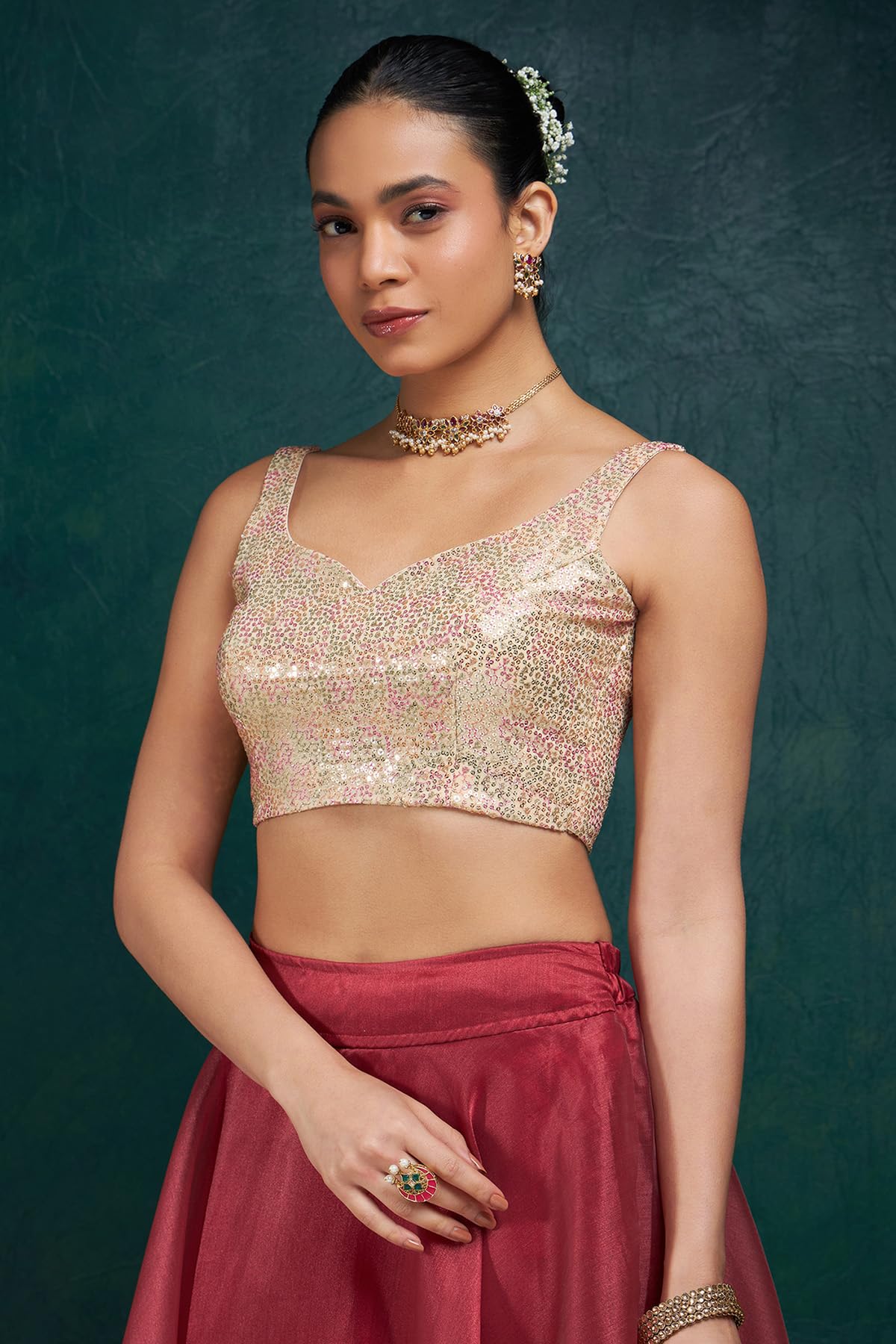 Soch Womens Beige Sequinned Embellished Georgette Padded Blouse