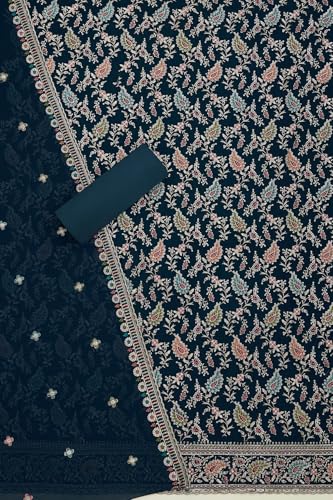 Soch Womens Blue Georgette Embroidered Unstitch Dress Material With Zari