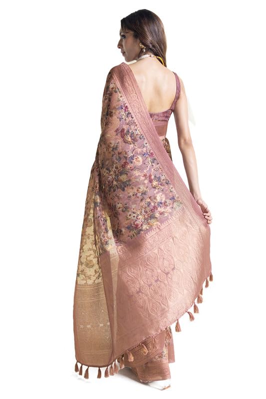 Soch Womens Earth Chanderi Floral Print Saree With Tassels