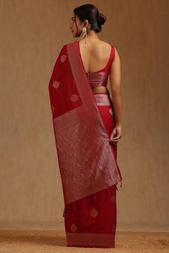 Soch Womens Maroon Viscose Silk Ethnic Motifs Zari Woven Saree
