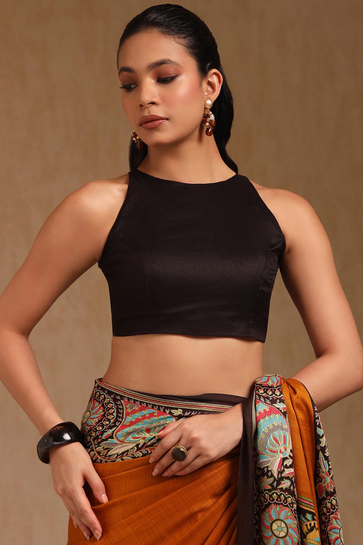 Soch Womens Mustard Pashmina Floral Print Saree