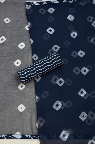 Soch Womens Navy Blue Cotton Floral Print Unstitch Dress Material With Beads