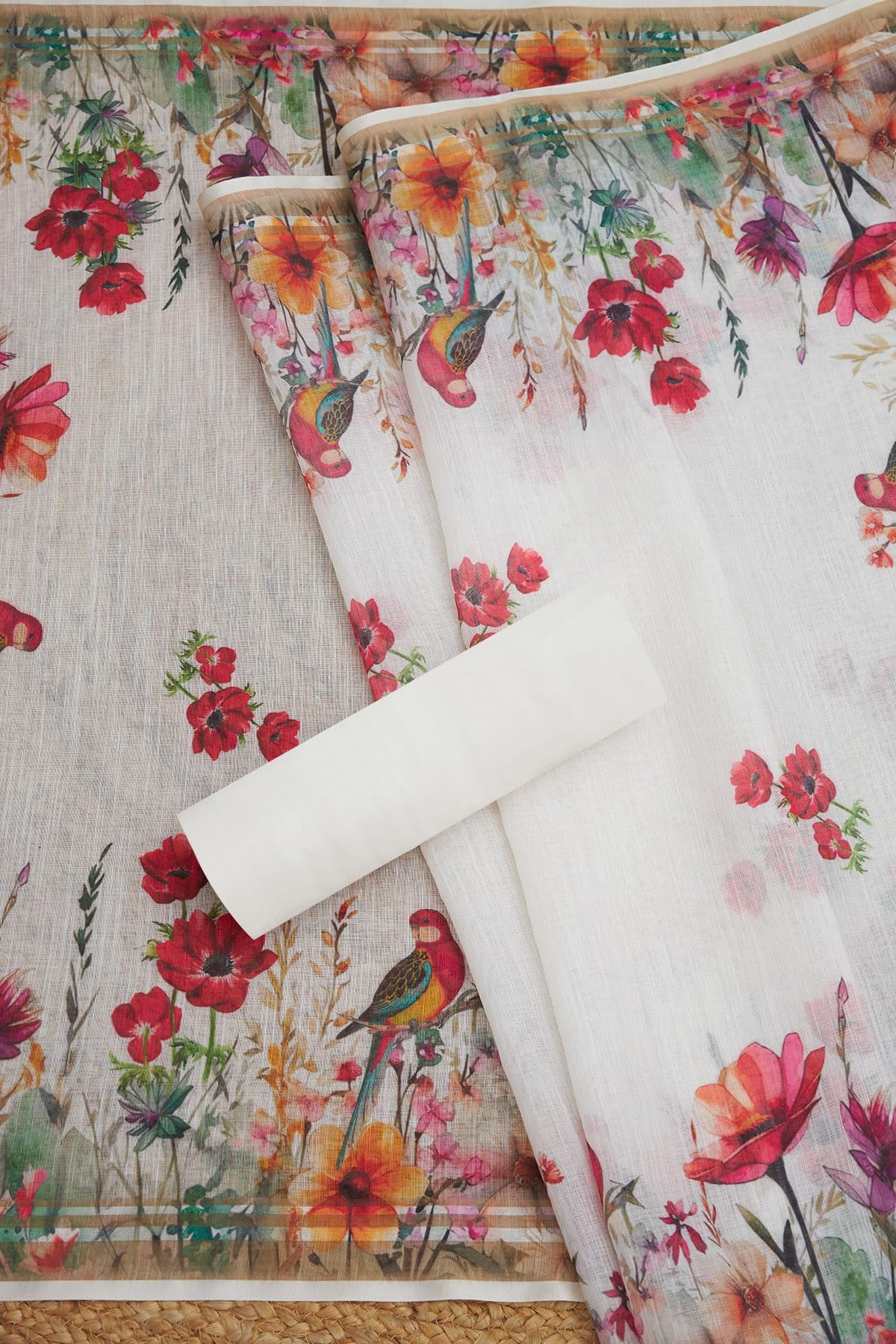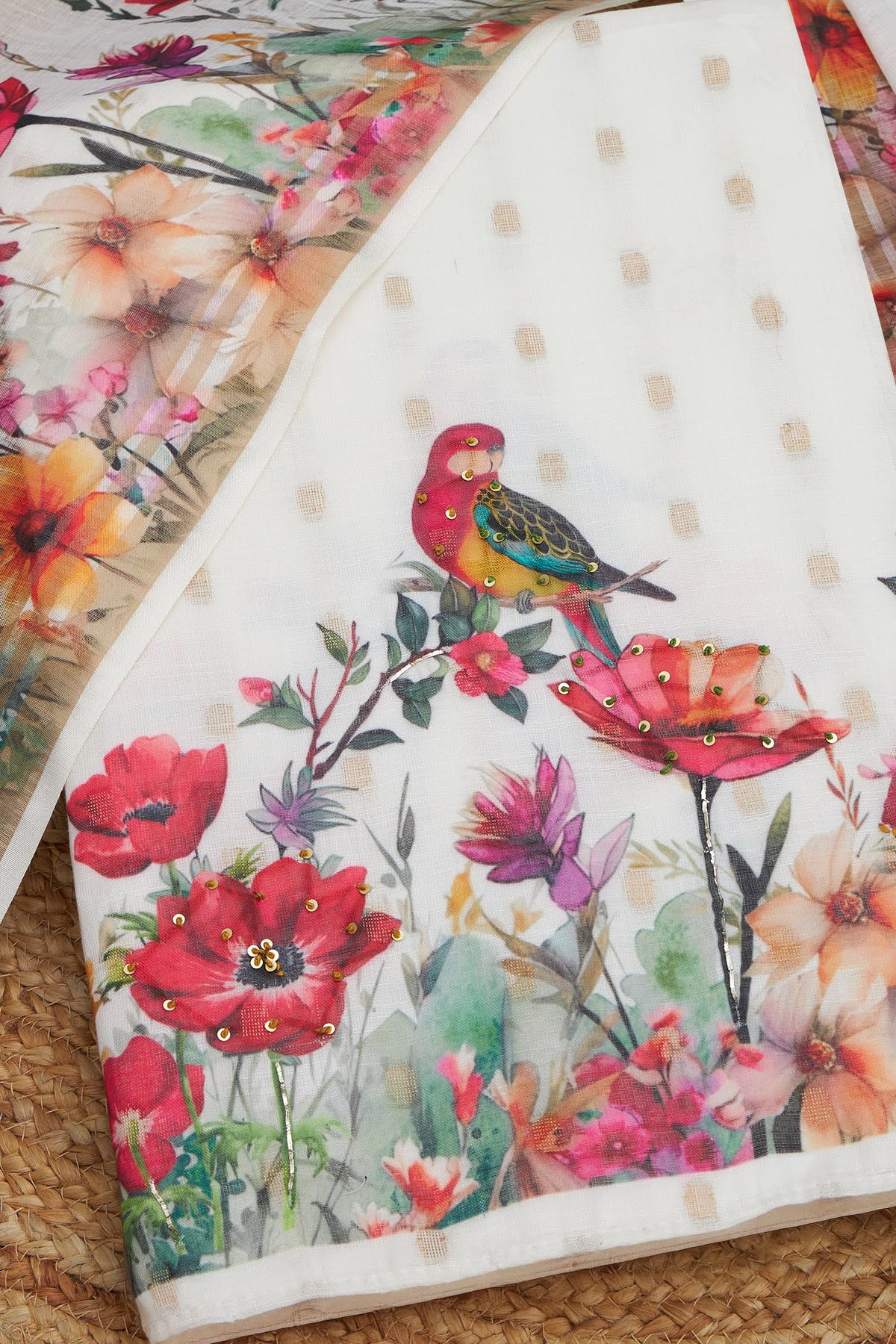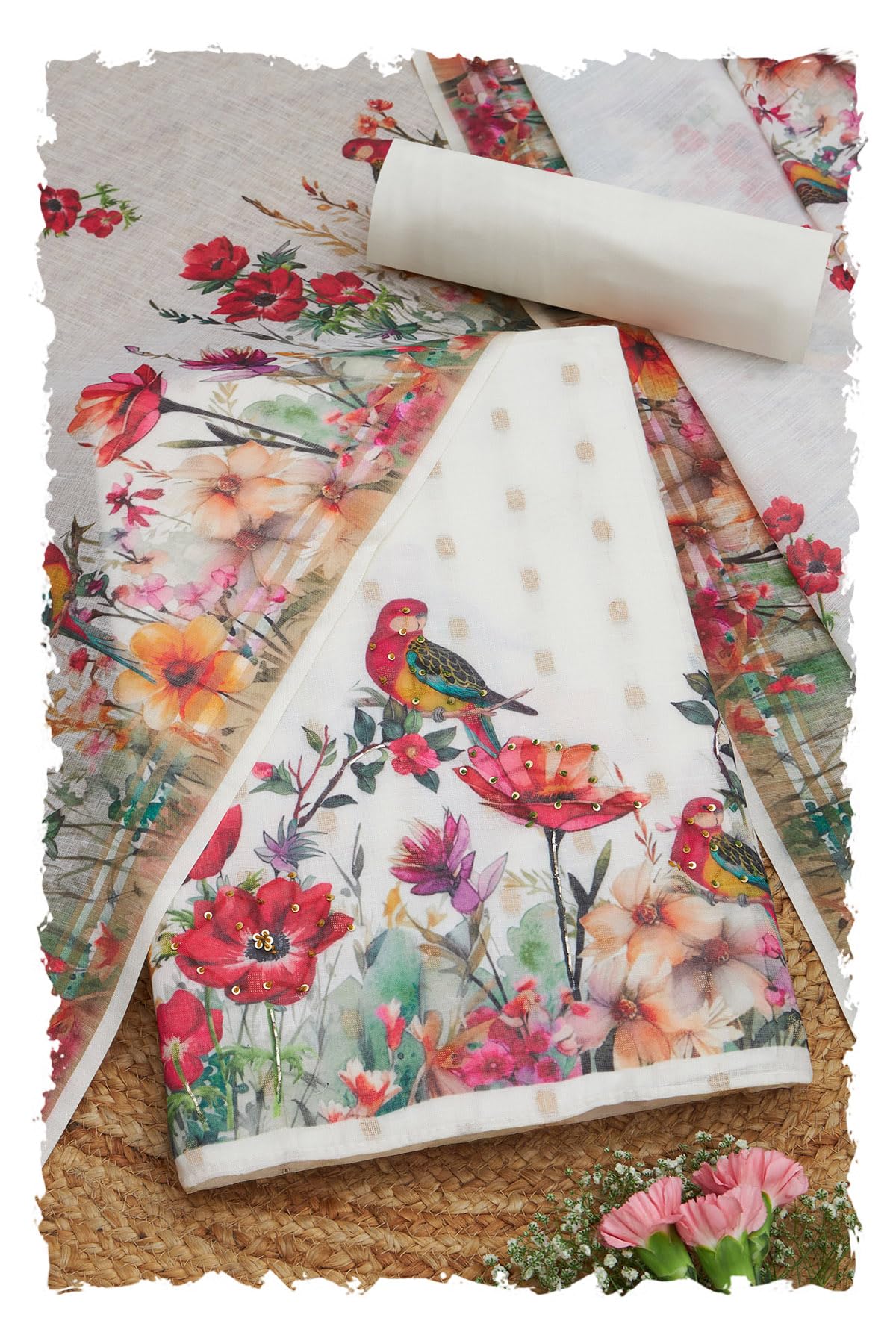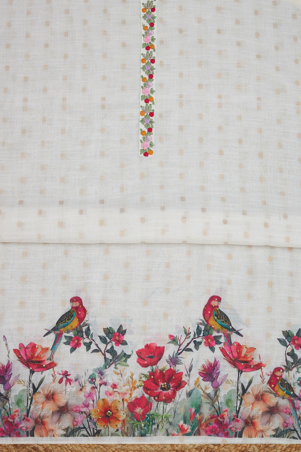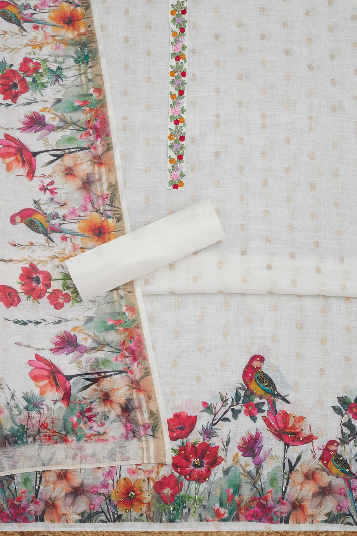 Soch Womens Off White Linen Botanical Print Unstitch Dress Material With Sequins