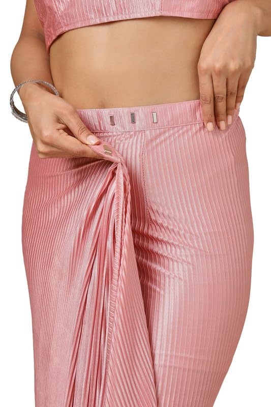 Soch Womens Peach Satin Embellished Ready-To-Wear Saree With Jacket