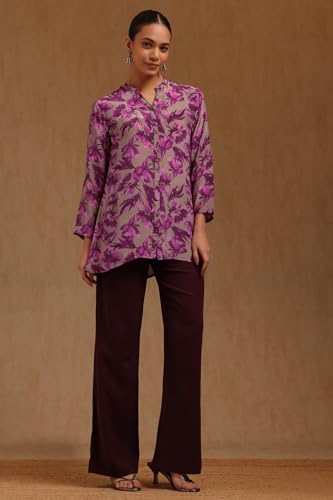 Soch Womens Purple Crepe Floral Print Tunic