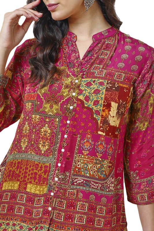 Soch Womens Red Viscose Crepe Abstract Print Tunic with Beads