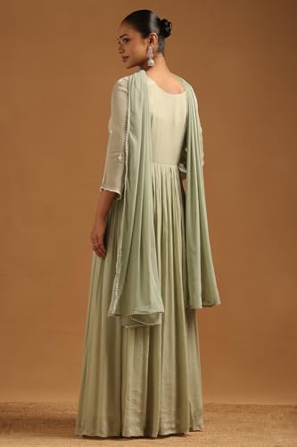 Soch Womens Sap Green Chinon Floral Gown with Cutwork and Stones