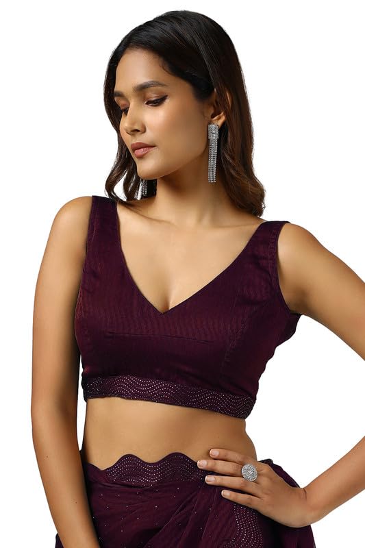Soch Womens Wine Chiffon Self Print Saree With Stone Work