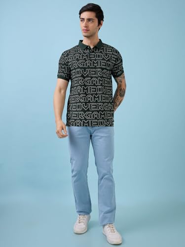 Status Quo Men's Typography Printed Polo Collar Half Sleeves Regular Fit Tshirt | Polo Collar | Pure Cotton | B Green | 3XL Size