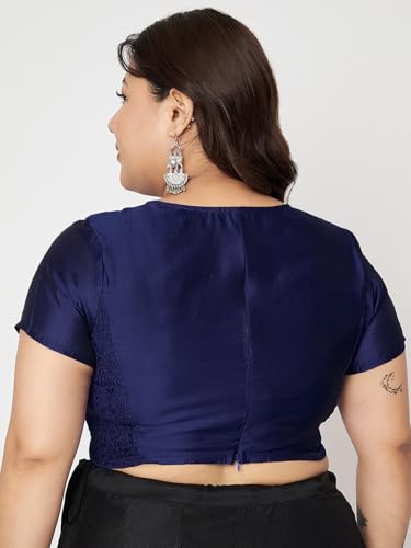 studio rasa Women's Plus Size Silk Blend Stretchable Blouse for Wedding Festive Party (TPWPC225BL66-6XL_Navy_6XL)