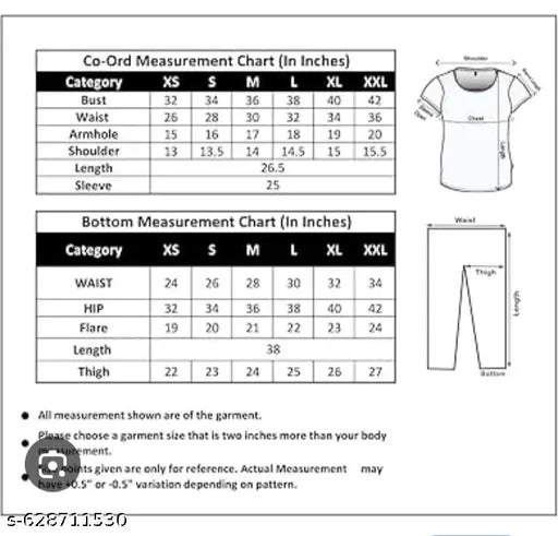 XXL (Top Bust Size42 in, Top Length Size 25 in, Top Hip Size 42 in, Bottom Waist Size 34 in, Bottom Hip Size 42 in, Bottom Length Size 38 in)