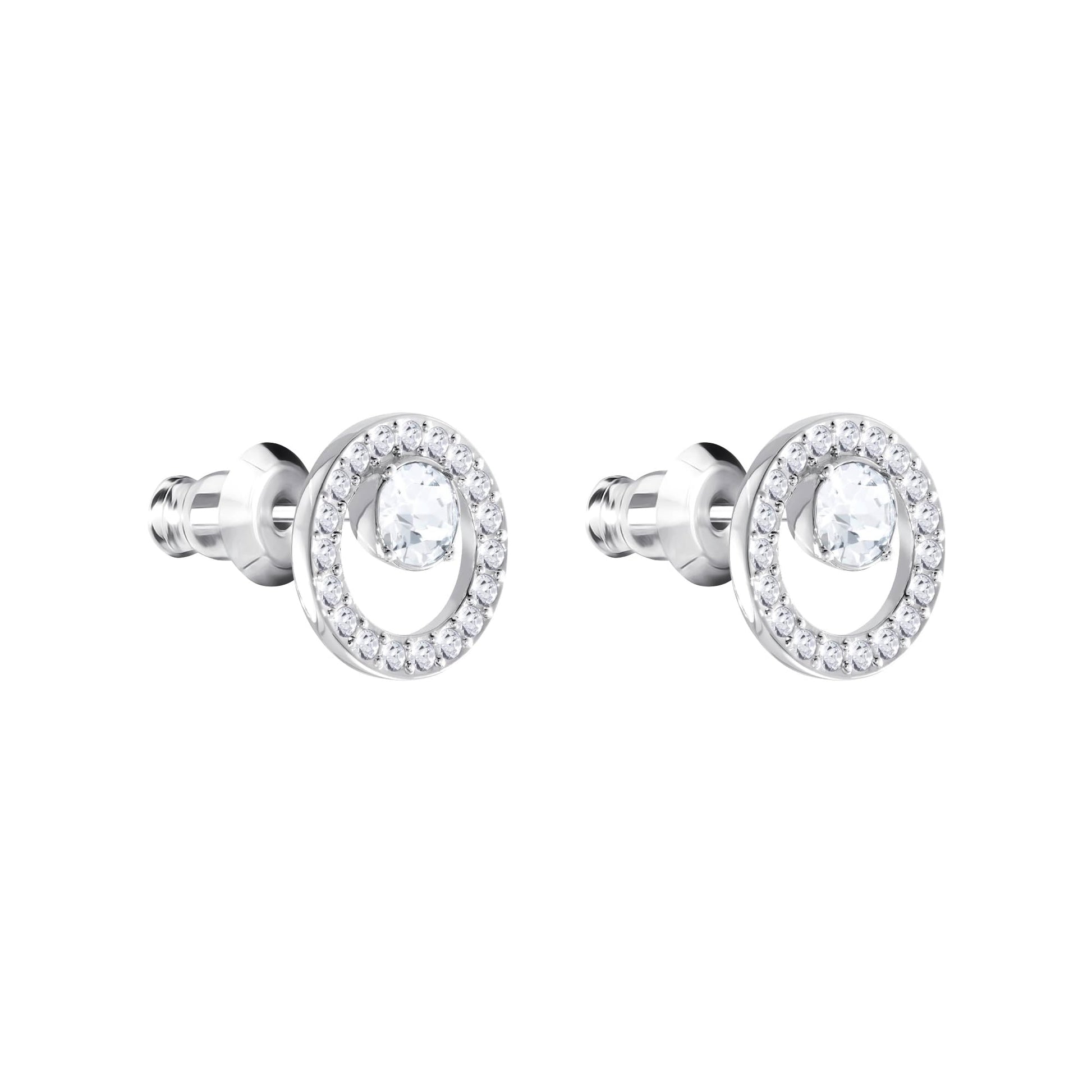 • Items delivered: 1 x set of Swarovski creativity round pierced studs for women with white Swarovski crystals and a rhodium plated setting, complete with Swarovski earring box