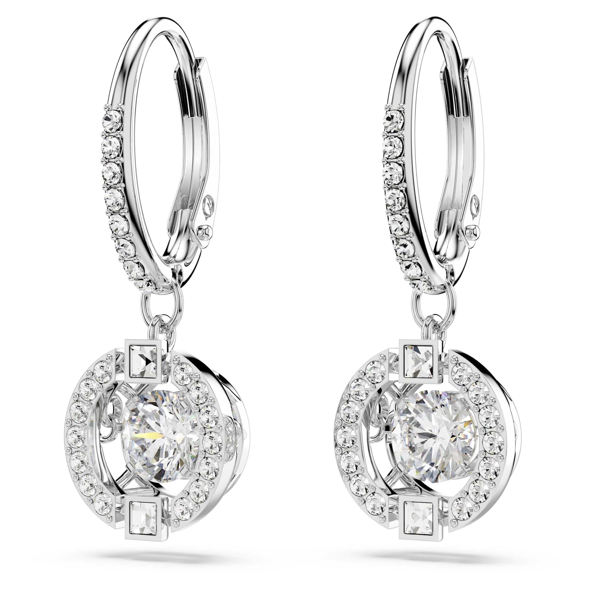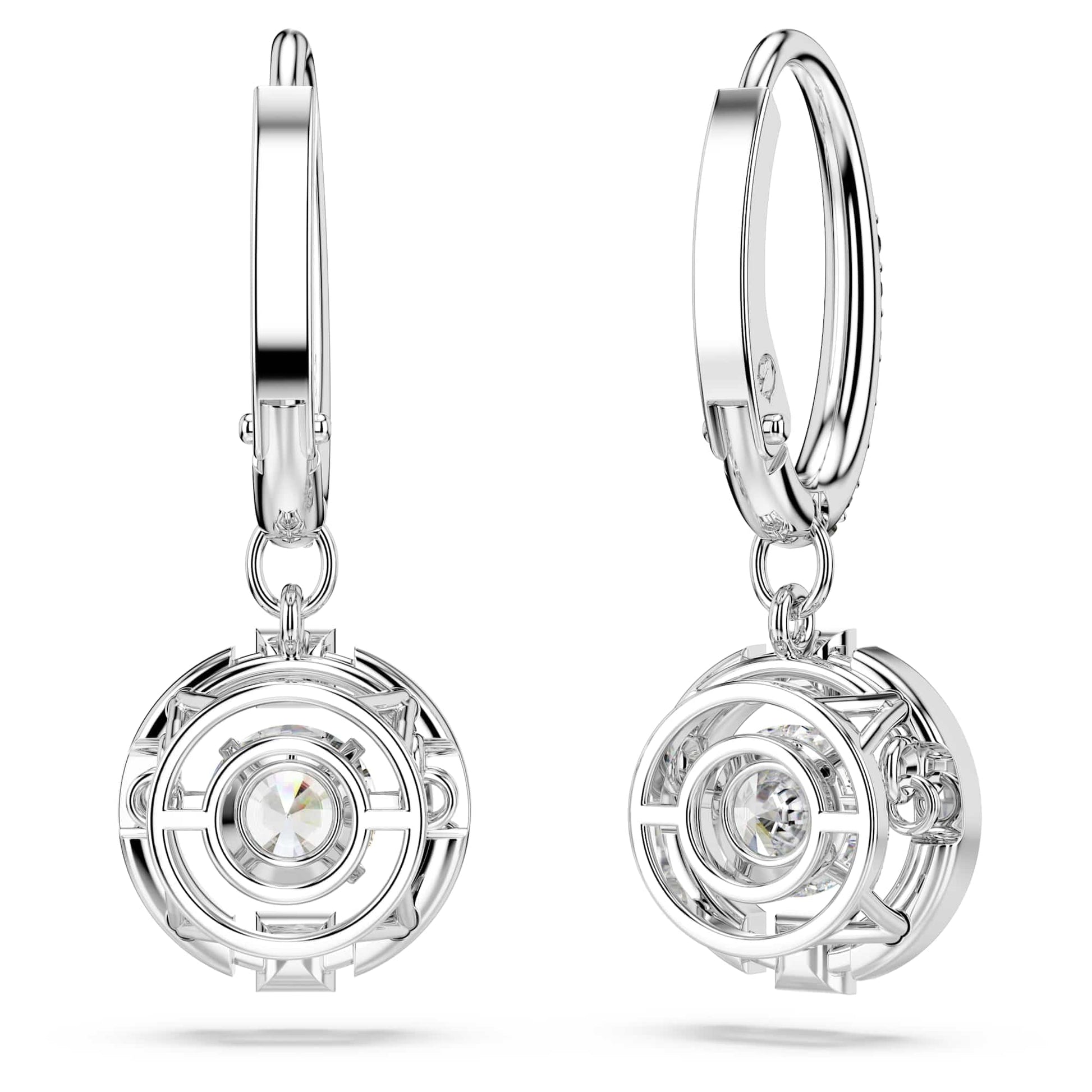 Swarovski Una drop earrings, Round cut, White, Rhodium plated