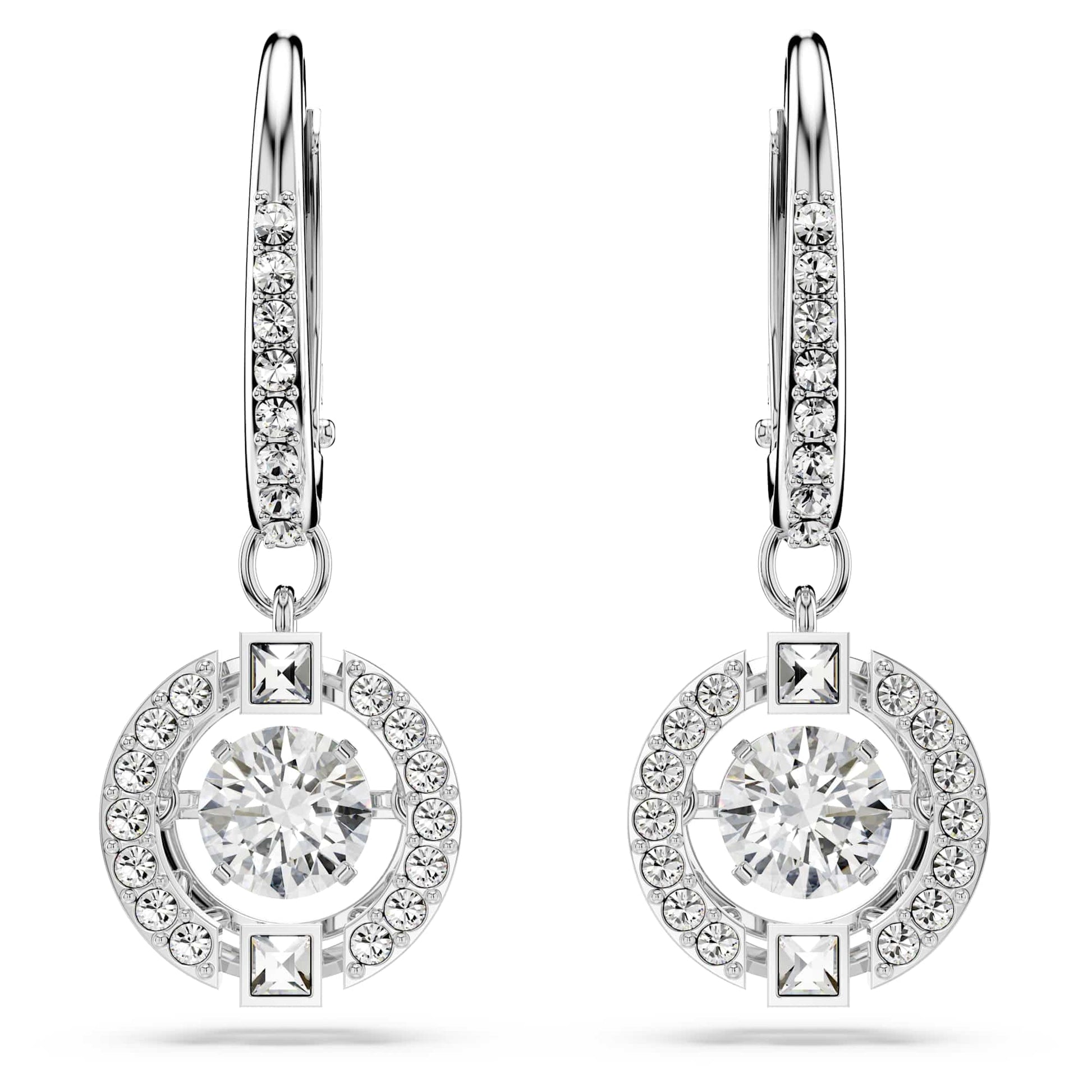 - Refined and playful: These Una pierced drop earrings combine the precision and quality of Swarovski white crystals in a dazzling rhodium plated setting, creating a delicate style