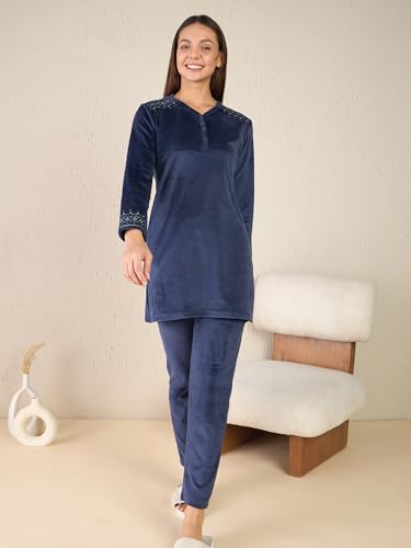 - : thoughtfully designed with subtle embroidery on the shoulders and sleeve cuffs, this pyjama set adds a graceful charm to your everyday loungewear. the intricate patterns elevate the look without being overly flashy.